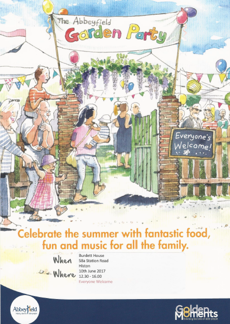 Abbeyfield Annual Garden Party by Clerk on June 6, 2017 Abbeyfield will be hosting their annual Garden Party at Burdett House on the 10th June from 12:30 Everyone Welcome!