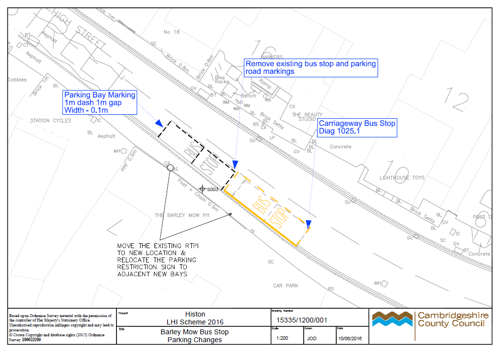 Cambridgeshire County Council is running a small informal consultation on changes to the bus stop and two on-road parking spaces on the High Street Histon, outside of the Barley Mow. The proposal is to swap the position of the parking spaces and bus stop to make it easier for buses to pull into the kerb. Please see the attached plan for further details.