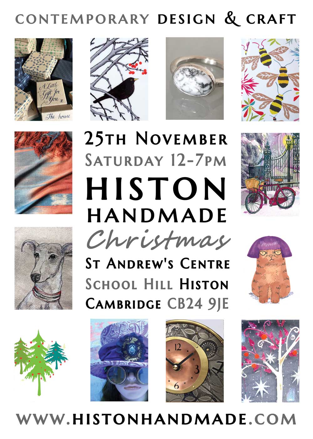 Histon Handmade Christmas Event – 25th November by Clerk on November 8, 2017 Saturday 25th November 12 – 7pm St Andrews Centre, School Hill, Histon www.histonhandmade.com