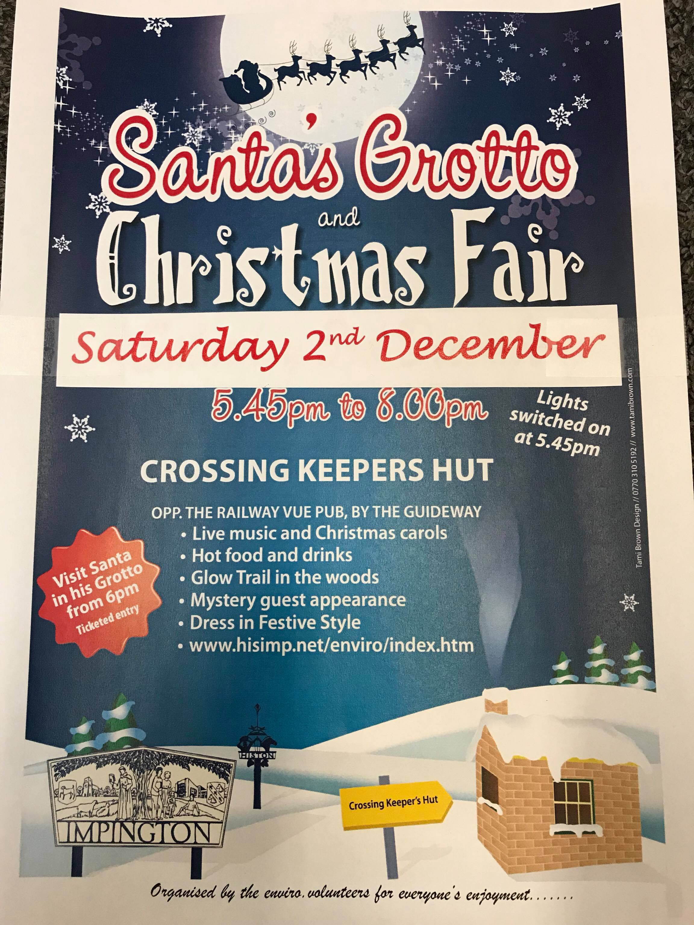Santa’s Grotto and Christmas Fair by Clerk on November 29, 2017 Saturday 2nd December 2017 5:45 to 8:00pm At the Crossing Keepers Hut Lights switched on at 5:45pm